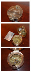KEVIN COSTNER COMPASSThis same type of compass was given to Kevin Costner in the movie "Message in a Bottle". The official name is “Brinton Compass” and they were used by Naval gunners to work out the trajectory of their shots. There are two "spirit levels" within the body of the compass and a locking pin that holds the needle in place when the compass is closed. This compass was made by the Thomas Evens company of London between 1914 and 1941 but works as good as the day it was made.