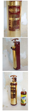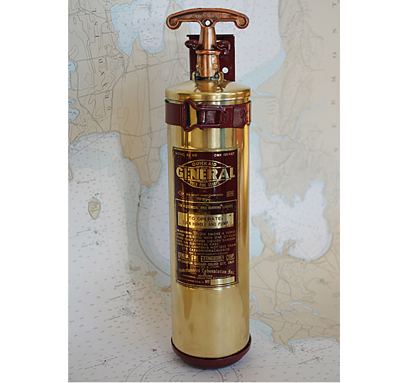 QUICKAID GENERAL FIRE EXTINGUISHERThis is an original fire extinguisher salvaged from a freshwater 1949 Chris Craft Runabout. These extinguishers were supplied by the boat manufacturer as standard equipment from 1949 - 1952. The extinguisher is solid brass and the bracket is steel. The brass has been cleaned, burnished, polished and sealed with a lacquer. The bracket has been repainted in the original Chris Craft bilge color. Model #85 HD, One Quart Size: 13’ H X 3 ¼ W X 3 ¼” D.